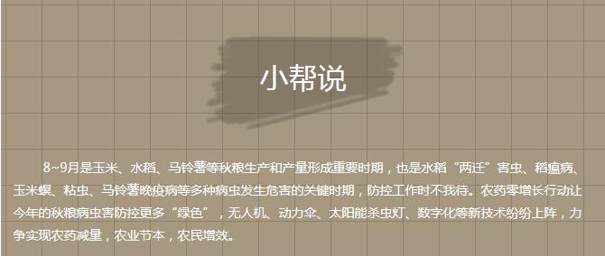 針對秋糧作物重大病蟲發生危害嚴峻形勢,各農業部門和植保機構按照農業部《防病治蟲奪秋糧豐收行動方案》總體要求,認真貫徹落實全國秋糧作物重大病蟲防控現場會精神,強化措施落實,努力實現“蟲口奪糧”。